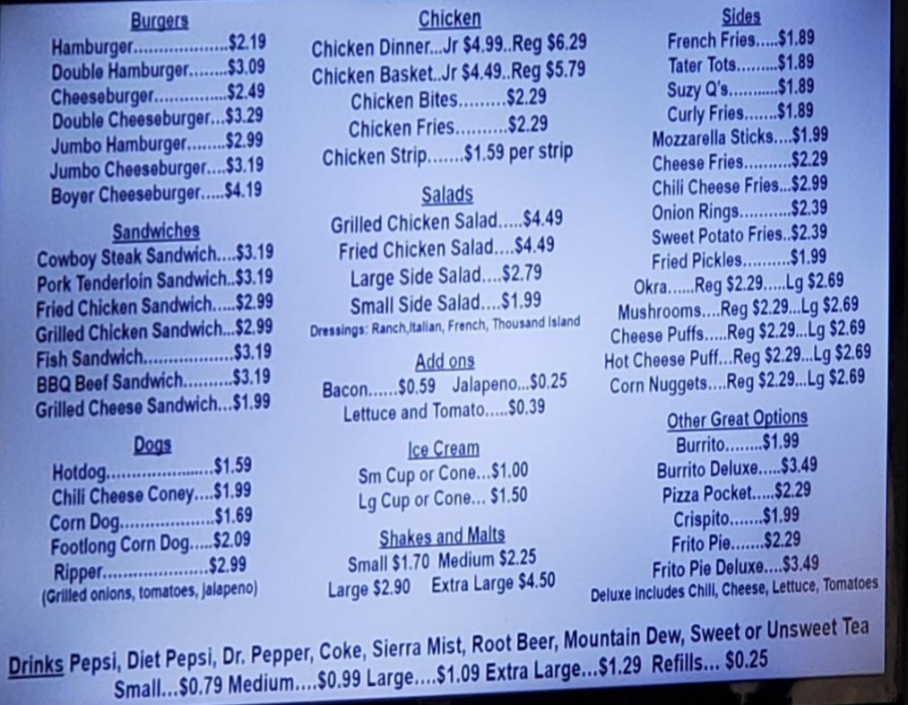Welcome to Dairy Snack, a hidden gem nestled in Fairland, OK. This small-town burger joint serves up a menu bursting with flavor and value, making it a must-visit for locals and travelers alike. Customers rave about the cheeseburgers, which deliver that nostalgic taste of a homemade classic. Alongside their famous Suzy Q's, hand-cut fries that are simply irresistible, Dairy Snack offers an array of delicious options that won’t break the bank.